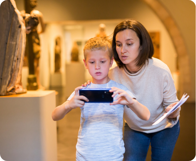 Les visites pour enfants sont conçues pour offrir une expérience amusante et éducative aux jeunes visiteurs. Elles s'appuient sur une narration divertissante et spécialisée pour aider les enfants à découvrir les expositions. Ces visites peuvent inclure des jeux, des quiz, des chasses au trésor, afin de capter l'imagination des enfants et de rendre ludique l'apprentissage de l'histoire et de la culture.